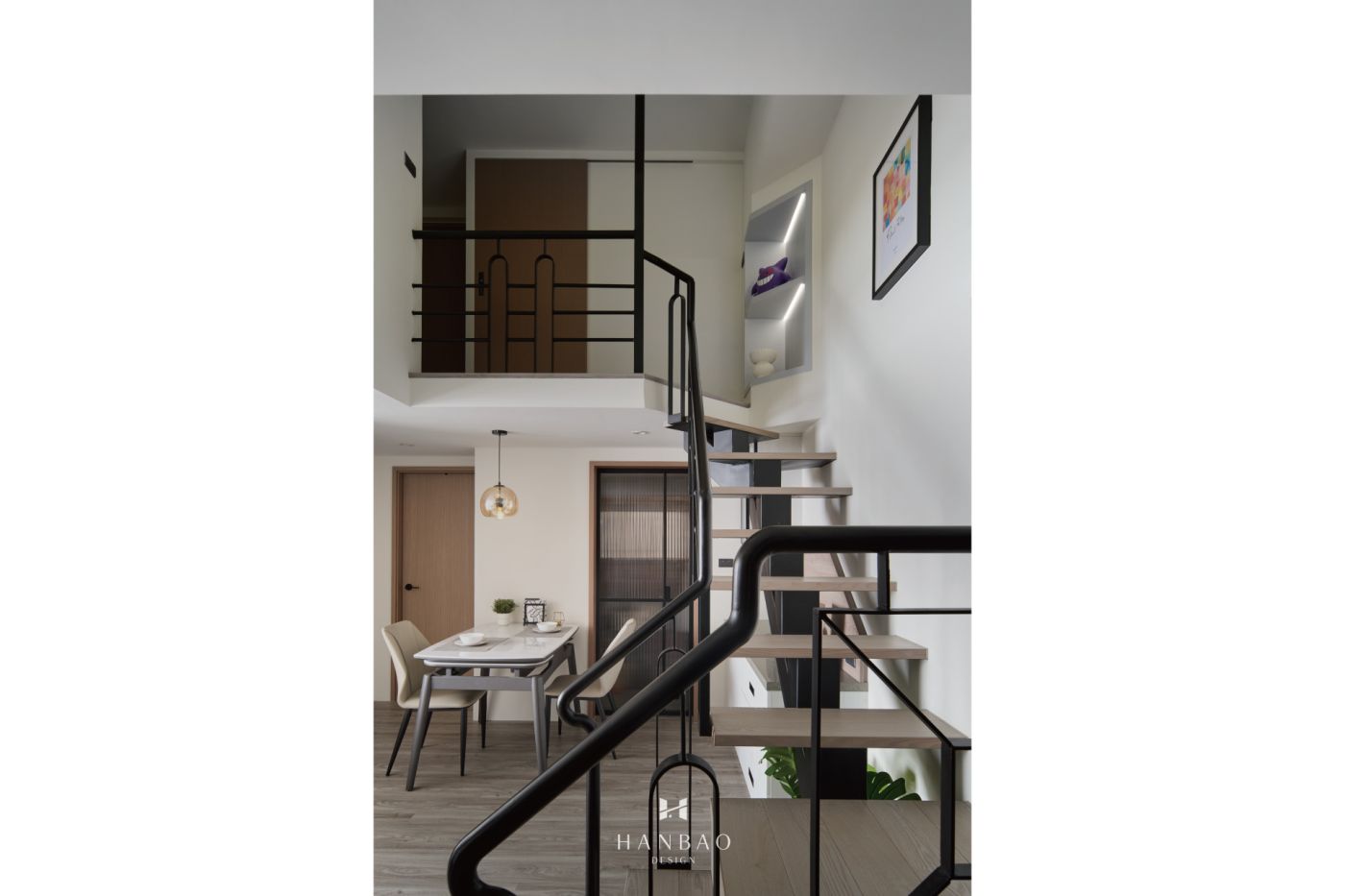 1. 梯間以黑鐵扶手引導視線,俐落線條讓垂直動線成為室內的視覺焦點之一