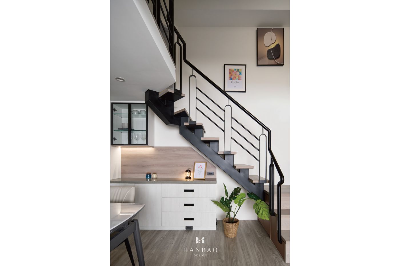 3. 樓梯下方區域充分利用為收納與展示工作檯面,使空間不浪費且具實用機能
