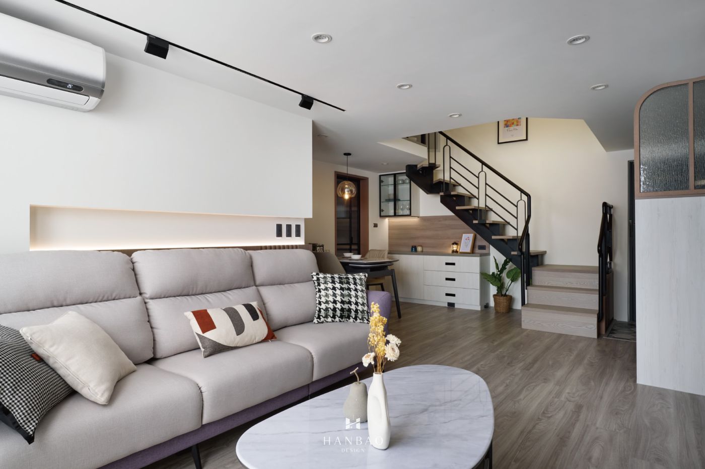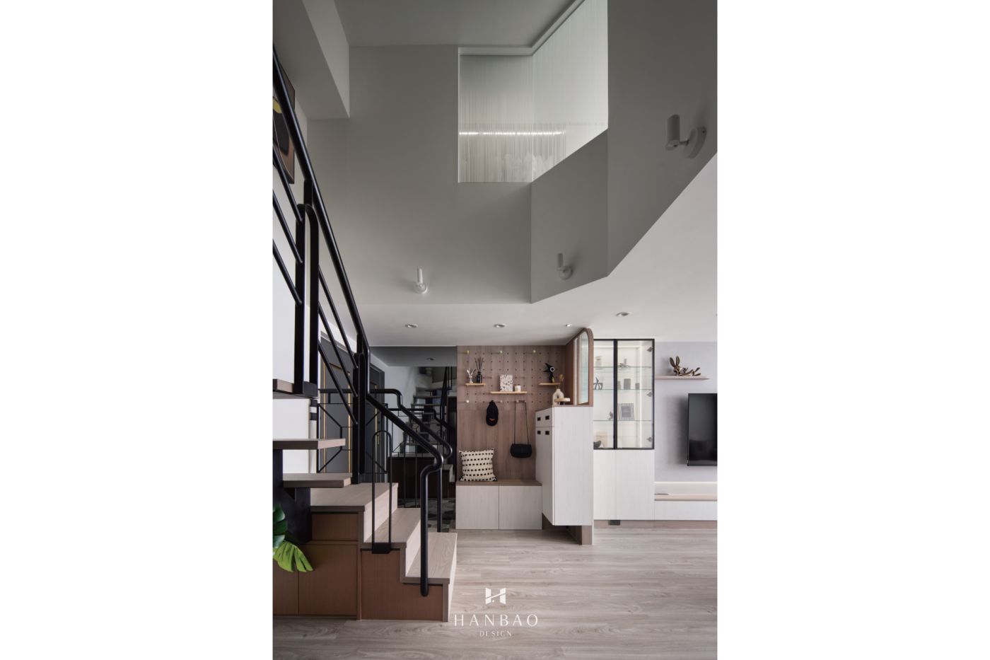 3. 空間並非以大量造型堆疊,而是透過 光源、轉角、比例、材質溫度 來強化層次。從玄關到客廳、梯間,再到私領域,整體視覺以「階序」方式遞進,形成專屬的居家節奏