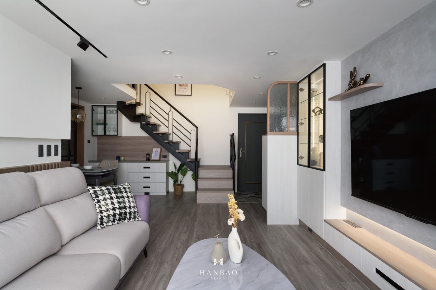 客廳也比我們想像中好用又好看,展示櫃、層板和電視牆的配置剛剛好,既有收納又不會太滿,每天看著心情都很好。樓梯區的改造也讓我們很有感,原本沒什麼存在感的地方,現在變成家裡最有設計感的一角。