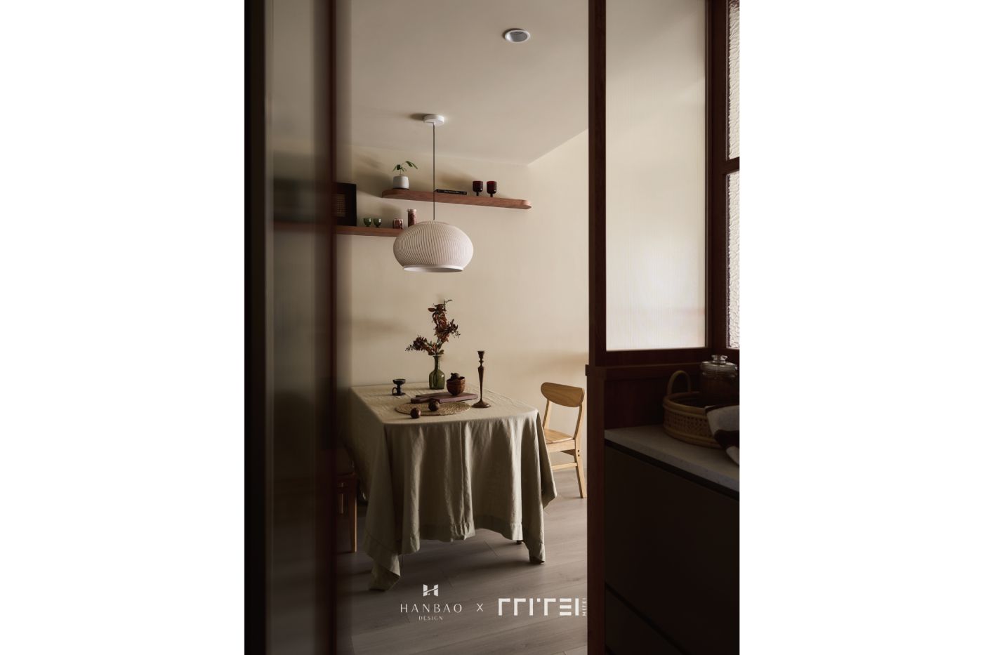配色刻意壓低飽和度,使復古氛圍更耐看、不突兀。照明以柔黃光為主,讓整體餐敘氛圍顯得溫暖、有家的味道