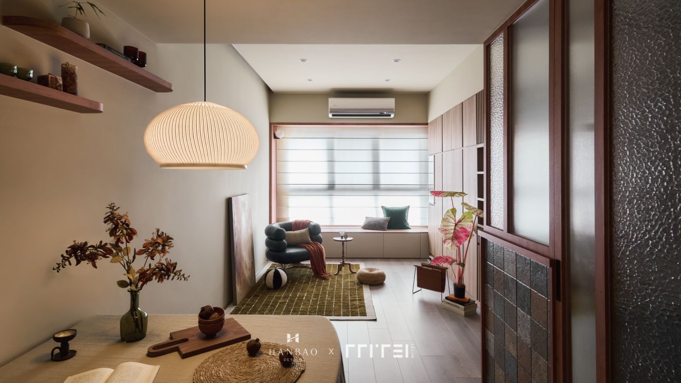 家具選擇偏向自然材質與柔和棉麻,呼應整體復古人文風格